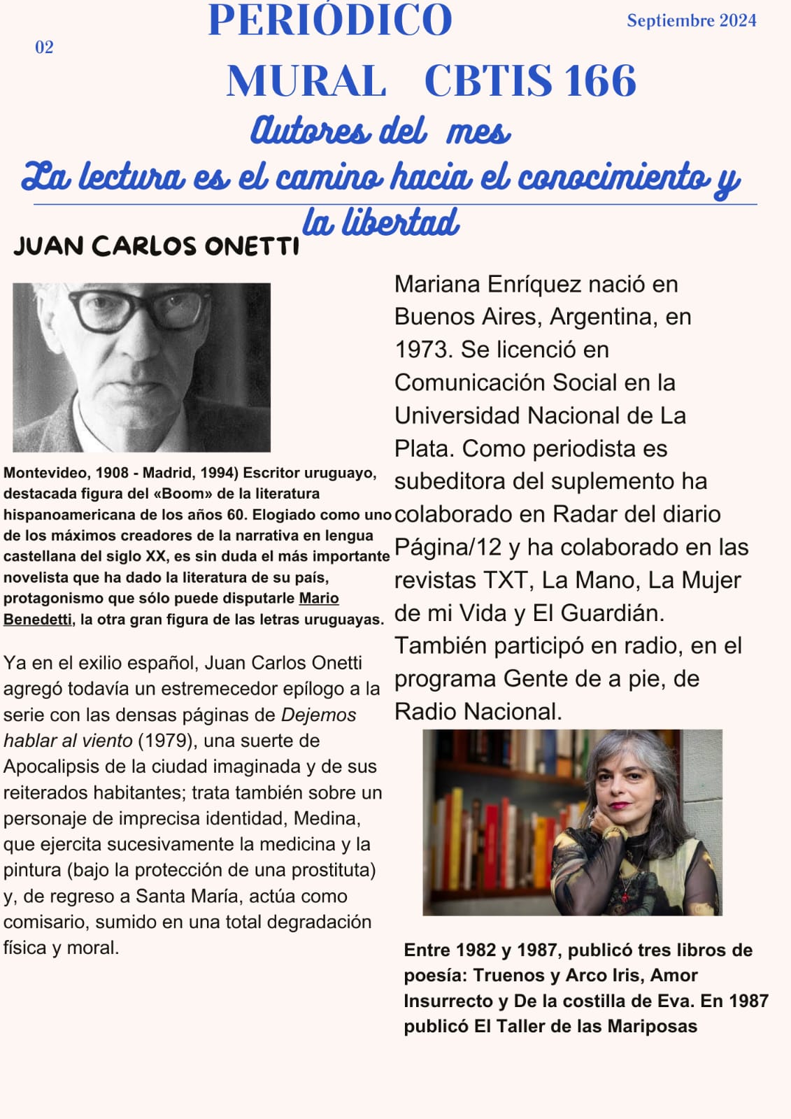 Los autores del mes de Septiembre son Juan Carlos Onitti y Mariana Enríquez