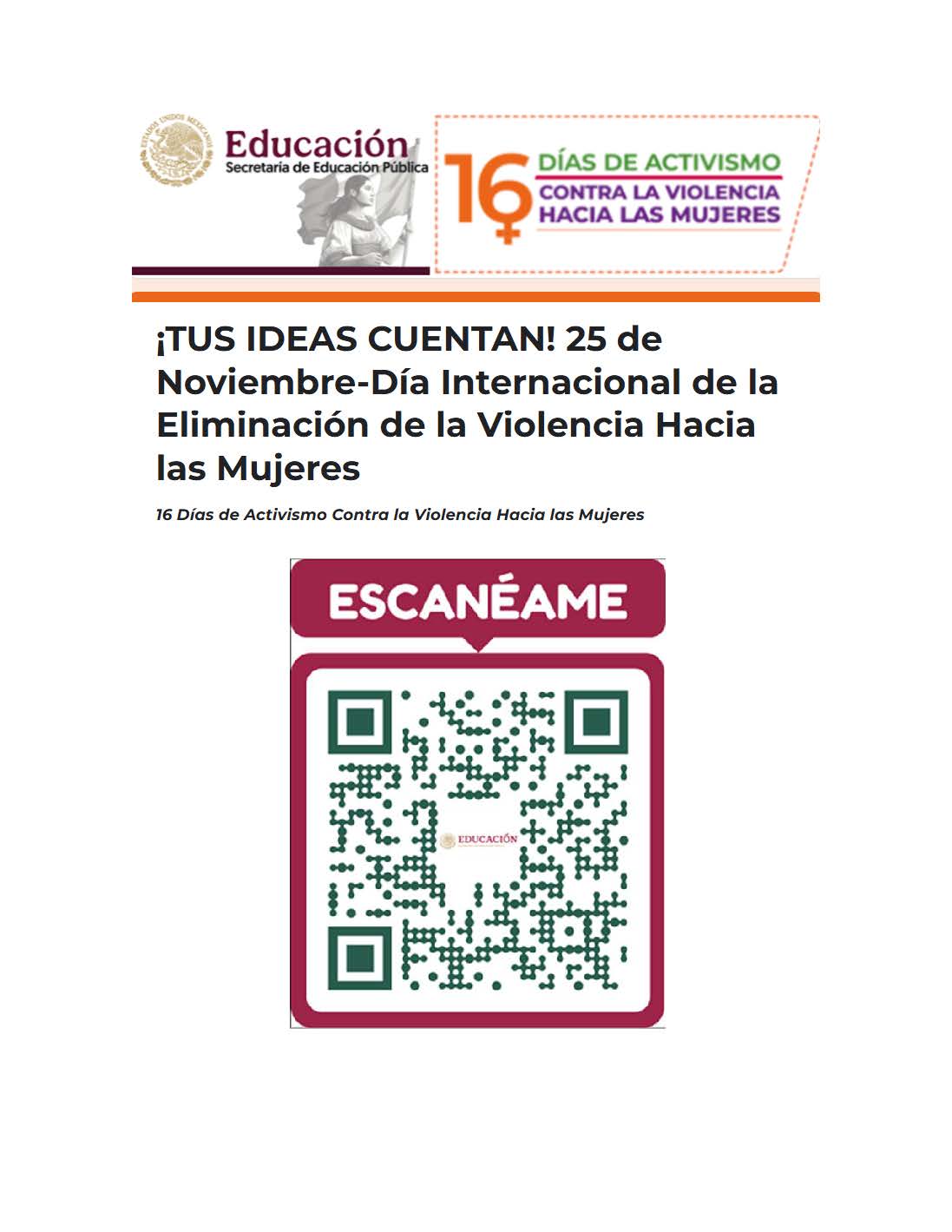 ¡TUS IDEAS CUENTAN! 25 de Noviembre-Día Internacional de la Eliminación de la Violencia Hacia las Mujeres