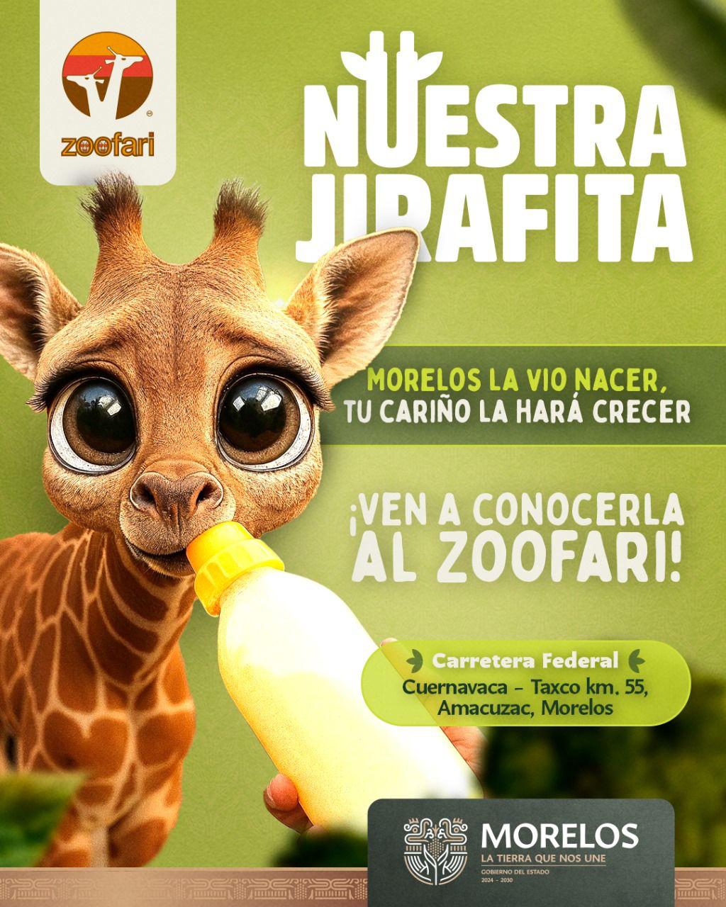 El Gobierno del Estado de Morelos a través de la Secretaría de Cultura realizarán una campaña cultural-educativa centrada en el nacimiento de una Jirafa en el Zoológico Morelense Zoofari y su integración en la comunidad, por ello se realizará un evento público presidido por nuestra Gobernadora Constitucional Margarita González Sarabia Calderón, el próximo 21 de junio del presente año, en las instalaciones del zoológico, sito en carretera federal Cuernavaca-Taxco km. 55, Amacuzac, Mor.