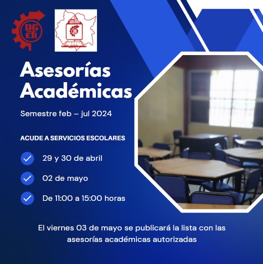 Por este medio se les da a conocer el proceso para las asesorías académicas del semestre febrero – julio 2024.