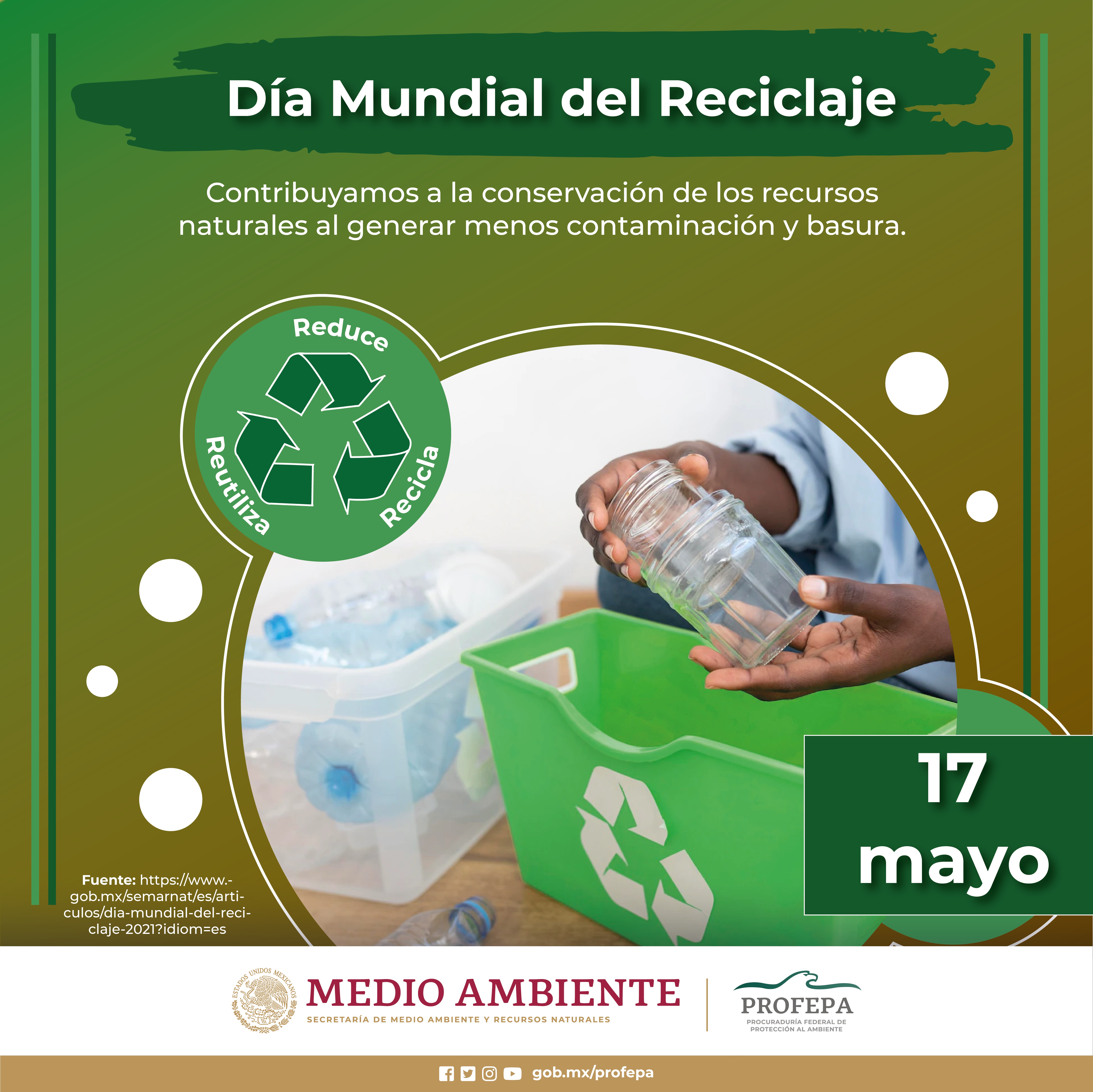 n 2005, la Organización de las Naciones Unidad para la Educación, la Ciencia y la Cultura (UNESCO) proclamó el 17 de mayo como el Día Mundial del Reciclaje, con el fin de crear conciencia y promover el reciclaje de todo tipo de residuos, reducir los volúmenes de desechos generados y reutilizar los materiales para minimizar la huella ecológica de carbono, con el fin de no contribuir al cambio climático y así proteger el medio ambiente.